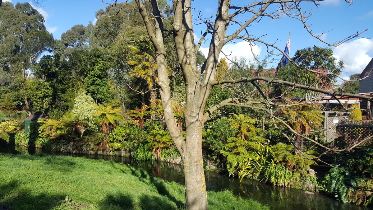 There is a pathway into Centennial Park off Sparks Road. I’ve often wanted to walk down it, but I’m always driving somewhere and so don’t. Due to being on my e-bike, I was able to stop and have a look and discovered this lovely section planting in ferns and pungas. I wasn’t sure what the stream/river was, but according to various online sources, it’s the Heathcote River.