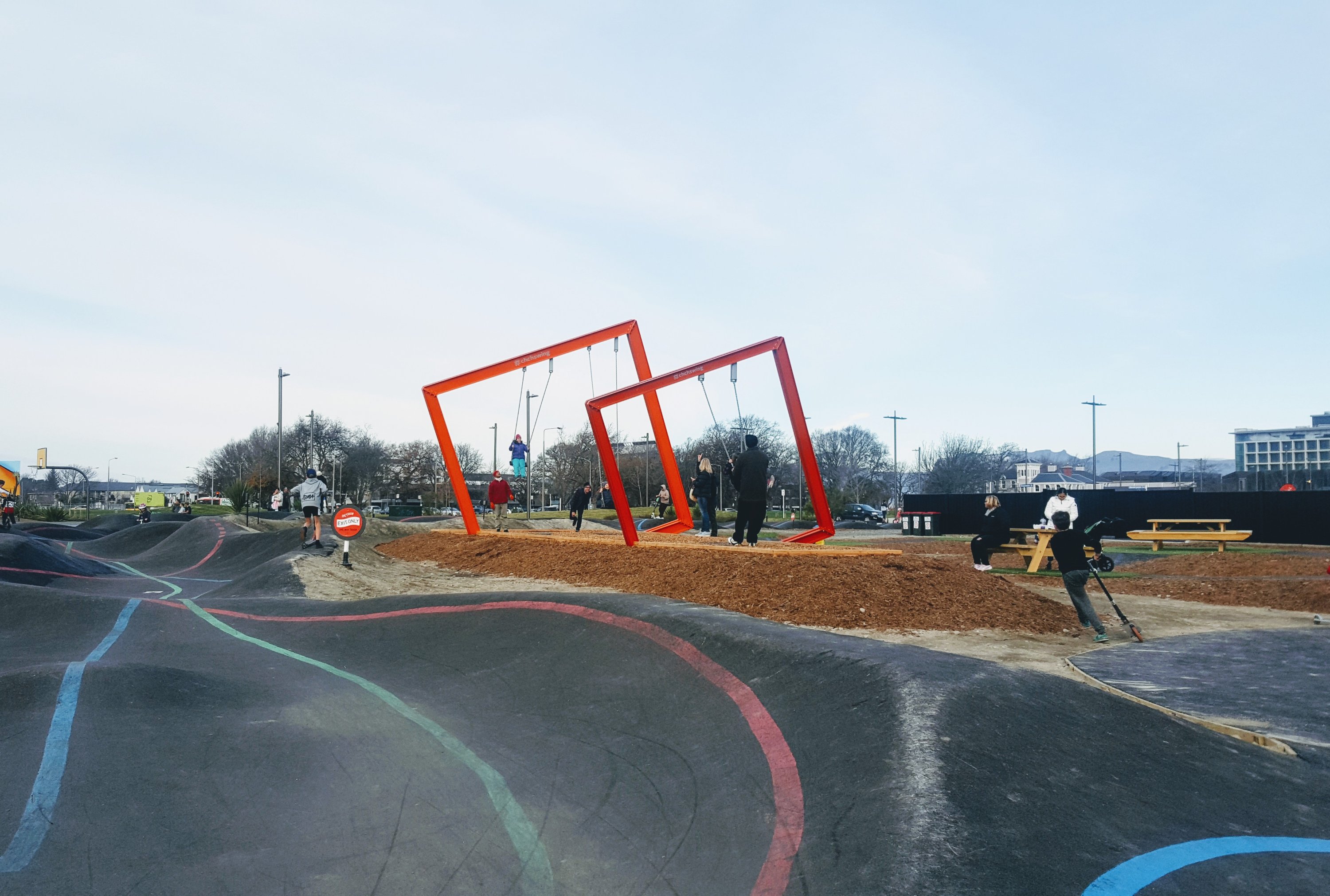 The giant swings on Mancester Street were very popular today, as was the pump track, with kids of all ages having lots of fun cycling or scooting the track.