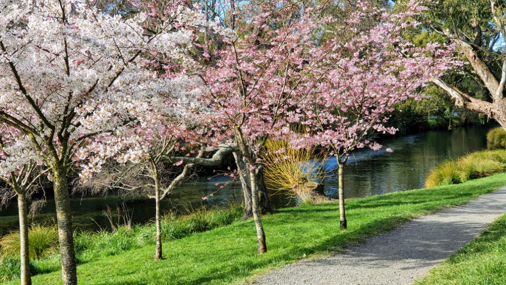 It’s blossom time again. These trees are by the Avon in Hagley Park.