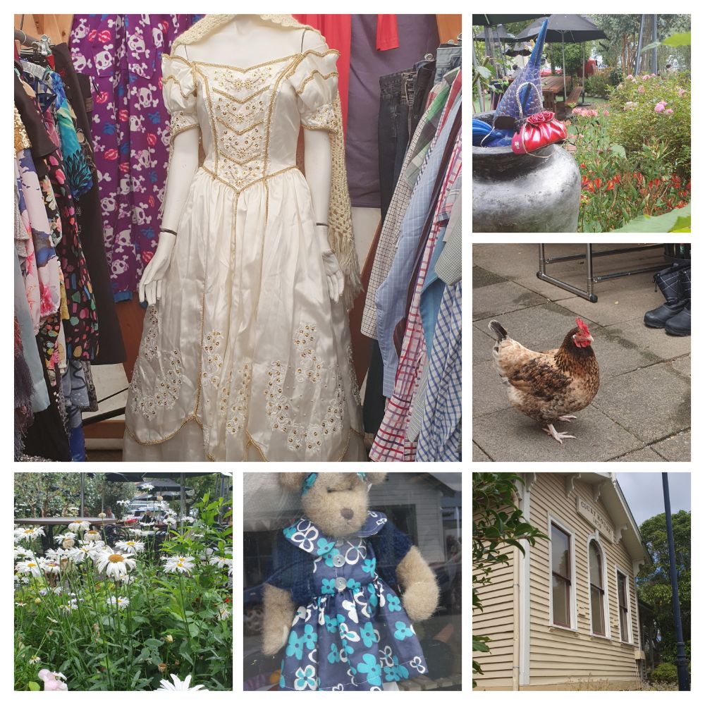 We took a day trip to Akaroa today. It’s still pretty and quirky! Today’s finds included a cafe that’s also a rummage sale with at least one free range chicken roaming amongst the cafe’s garden, and a teddy bear that’s the stuff of nightmares.