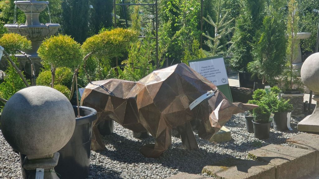 This rhino sculpture is called Fernando and is for sale at the garden centre.